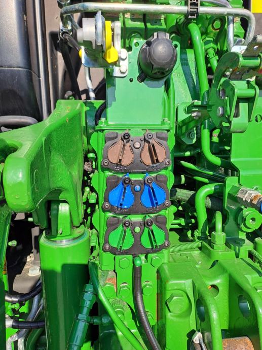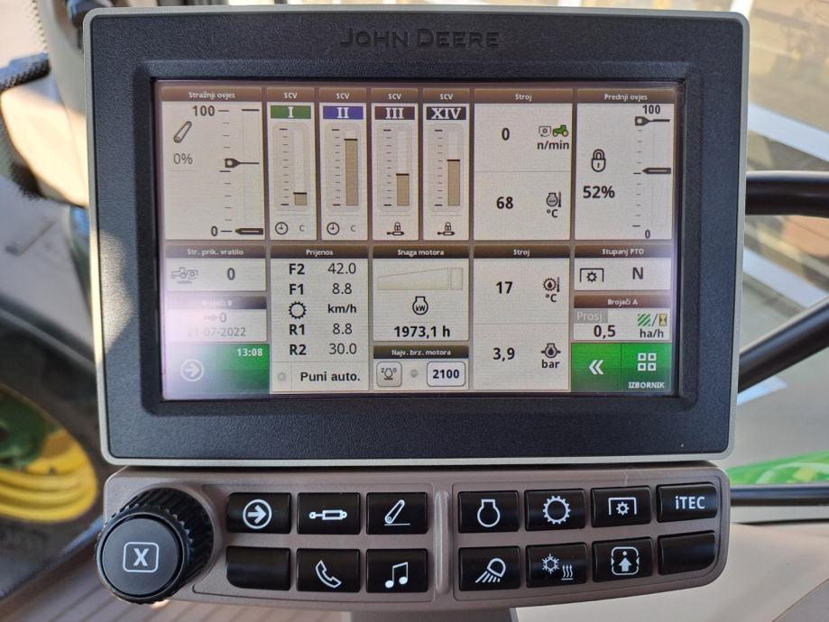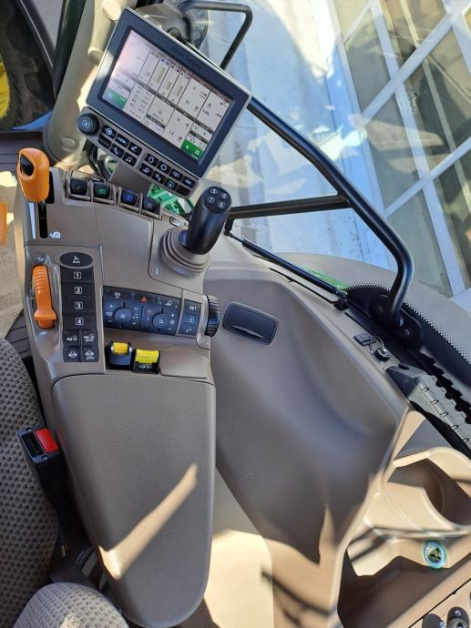 Mjenjač: John Deere AutoPowr mjenjač, maksimalna brzina 40 km/h, električni reverzer s lijeve strane upravljača, Park Lock mehanička blokada mjenjača u parkirnom položaju ručice