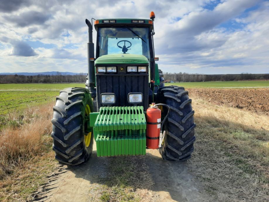 Mjenjač: John Deere PowerShift 16/5 ( maksimalna brzina 40 km/h, električni reverzer s lijeve strane upravljača, Park Lock mehanička blokada mjenjača u parkirnom položaju ručice