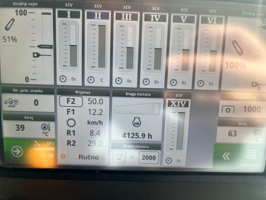 Priključno vratilo: neovisno stražnje priključno vratilo 1000/1000E o/min, električna izmjena brzine putem putem displeja, spojka s višestrukim diskovima u ulju