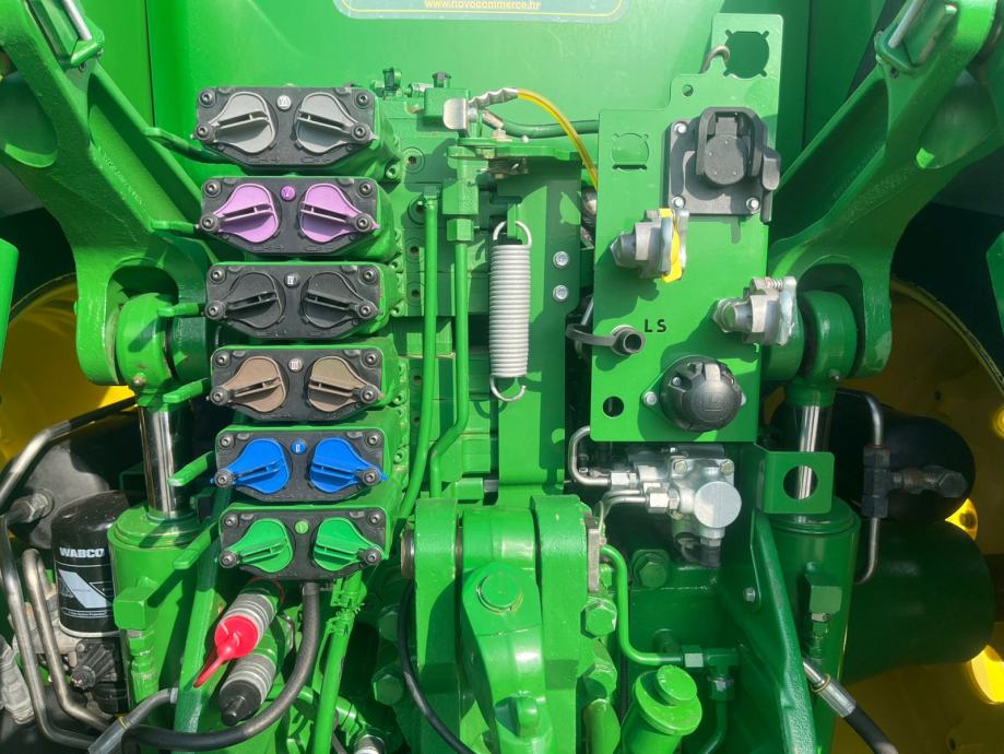 3-točkovni ovjes: elektro-hidraulična kontrola EHR, donje stražnje podizne poluge s kukama kat. 4, kontrola vučne sile, podesiva visina dizanja, brzina spuštanja, dubina spuštanja, vanjski prekidači na stražnjim blatobranima za dizanje/spuštanje stražnjih podiznih poluga, donja poteznica kat. 4, gornja ručna poteznica, top-link poluga kat. 4