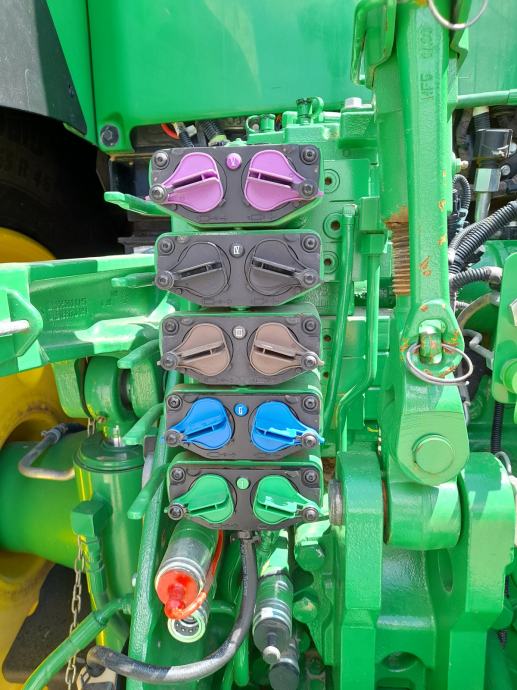 lijeve stepenice, desne stepenice, set utega u stražnjim kotačima 2x70 kg i 2x900 kg, John Deere prednja hidraulika sa kontrolom položaja i 2 DA hidrauličke linije