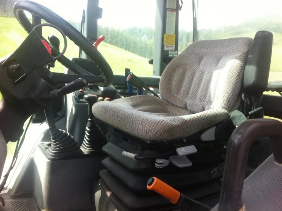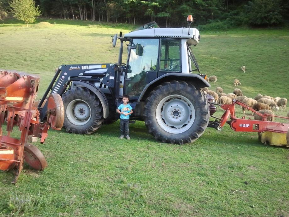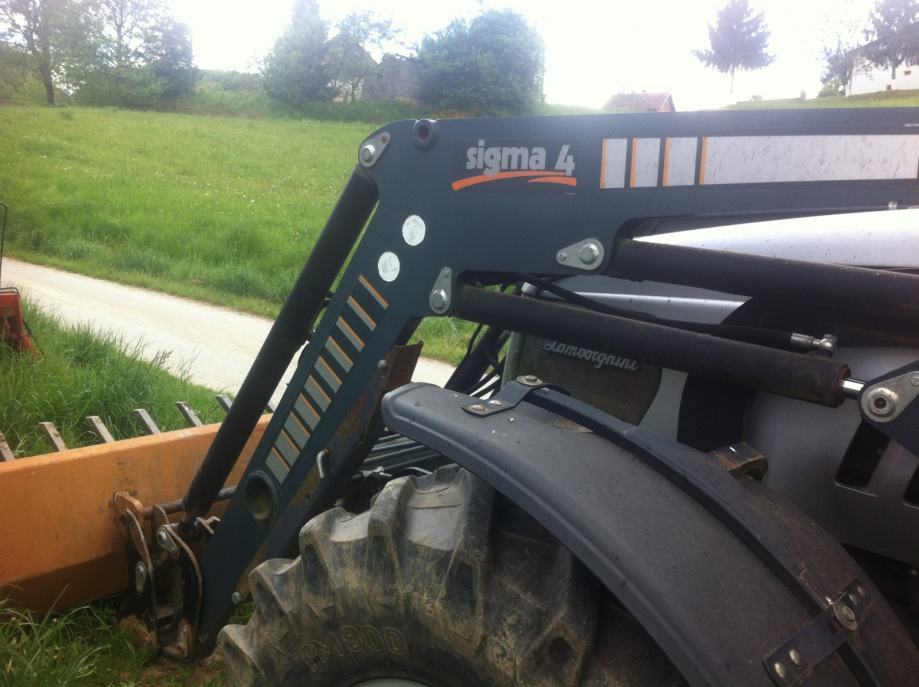 Traktor Lamborghini R4 110 WTI 4WD sa prednjim utovarivačem Sigma 4 ( diže 1500 kg na 4,5 m visine sa paralelogramom za kontrolu nagiba tereta kod dizanja, joystik, korpa sa vilama i daskom za ravnnje) izvanredno očuvan, prvi vlasnik, 2850 radnih sati.60+60 brzina, Mjenjanje brzina bez kvačila,tempomat, dva kardana, izmjenjive kuke za vuču,Grammer sjedalo hiraulično namještanje sa okretanjem. Klima, mikrofilteri. Panasonic stereo, prolaz za kablove,..Radialne gume sa okretnim blatobranima vrlo dobro očuvane. Vanjska kontrola hidraulike. Krovni prozor sa šiberom .Traktor je bio sajamski pokazni primjerak pa ima hrpu opreme, rađen za strano tržište Korišten isključivo za košnju, baliranje i utovar stajnjaka.