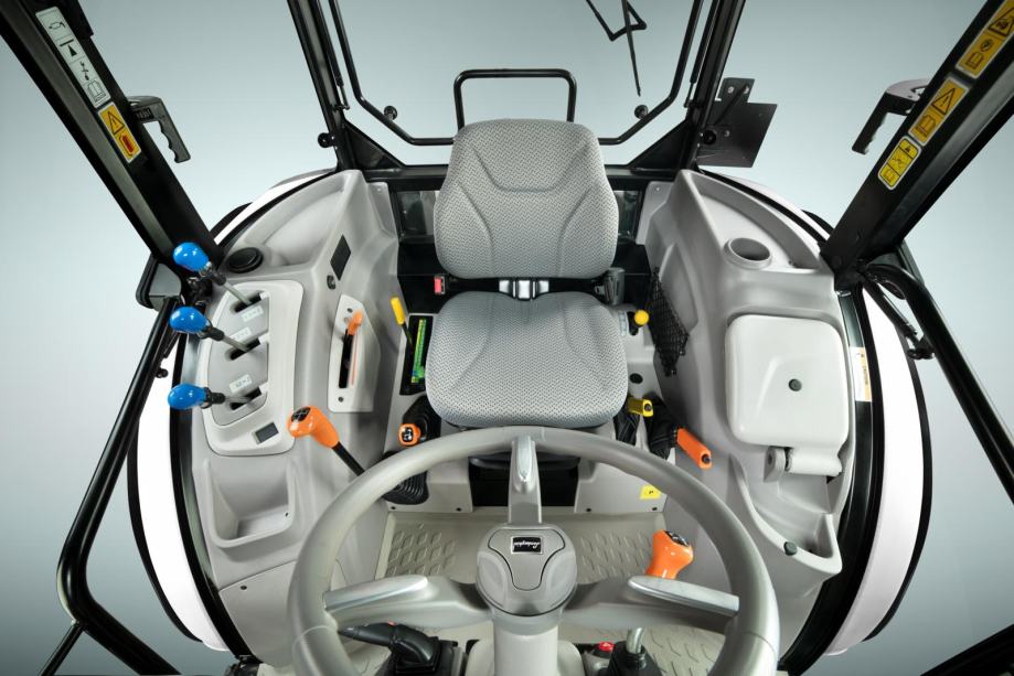 - Kabina sa zvučnom izolacijom, 2 bočna vrata, grijanje i ventilacija, otvaranje prednjeg stakla, tonirana stakla, 2 prednja + 2 stražnja radna svijetla, otvaranje stražnjeg stakla, stražnji izlaz za kablove, priprema za rotacijsko svijetlo, unutarnje svijetlo, pretinac za stvari