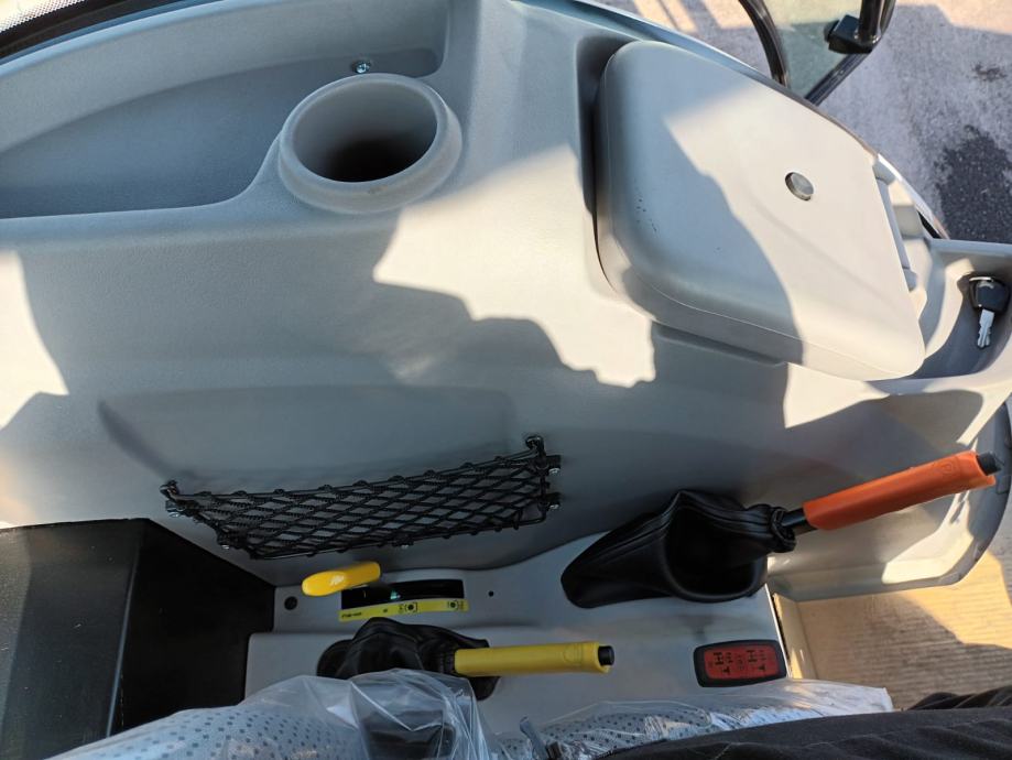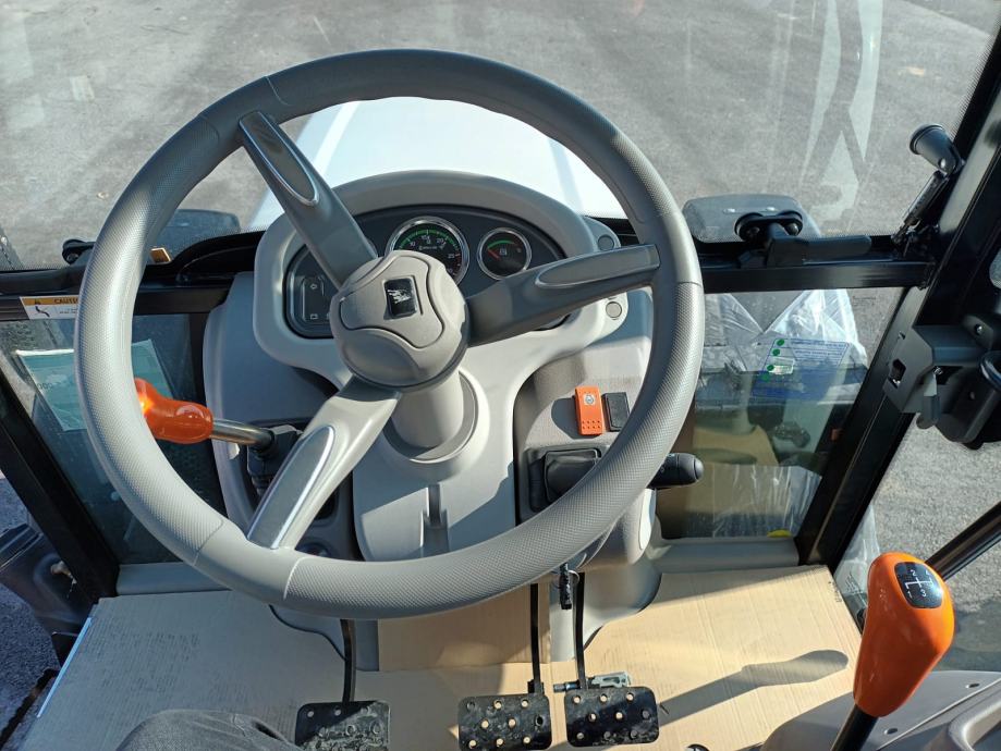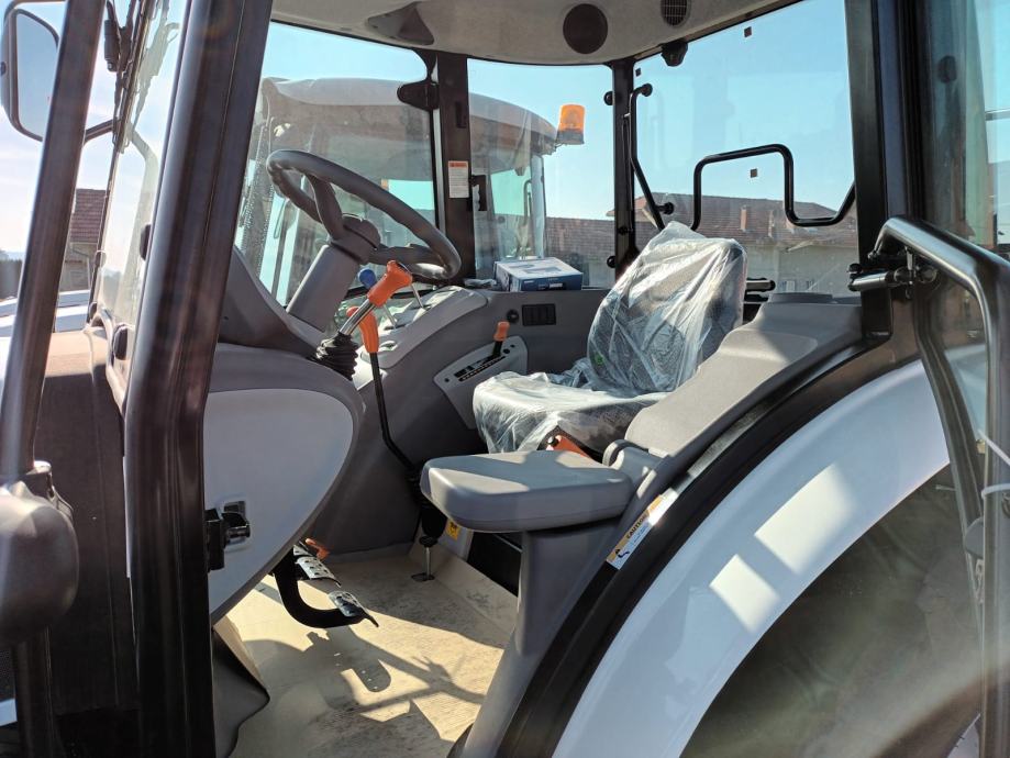 - Kabina sa zvučnom izolacijom, 2 bočna vrata, grijanje i ventilacija, otvaranje prednjeg stakla, tonirana stakla, 2 prednja + 2 stražnja radna svijetla, otvaranje stražnjeg stakla, stražnji izlaz za kablove, priprema za rotacijsko svijetlo, unutarnje svijetlo, pretinac za stvari