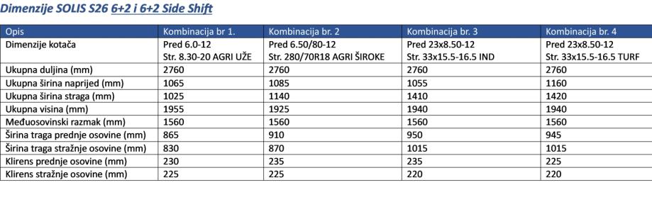 CIJENA MODELA S 26 side shift (s mjenjačima sa strane 6+2, gumama 6.50-12, 280/70-18, podizanjem stražnje hidraulike od 750 kg):