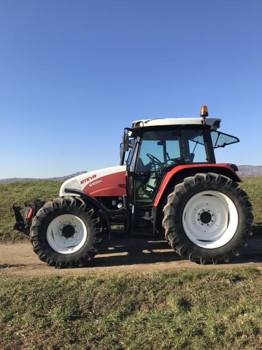 Prodam traktor Steyr 9100M, 97km, godina 2005, 4400 radnih sati, 1 vlasnik. Prednja hidraulika i kardan, stražnji 1000 / 1000eco, 540 / 540eco, stražnja hidraulika, stražnji 3 para hidrauličkih izlaza + povratna linija, 1 ventil elektromagnetski, druga dva su mehanička, 7 prednje hidrauličke spojnice, hidraulična kontrola i kardan također izvan na blatobranu, kategoriji za ruku 2, prednje gume 480/65 R24, stražnje gume 540/65 R38, gume imaju 80% profila. Traktor je neoštećen, u izvrsnom stanju. Susjedstvo Novo Mesta.