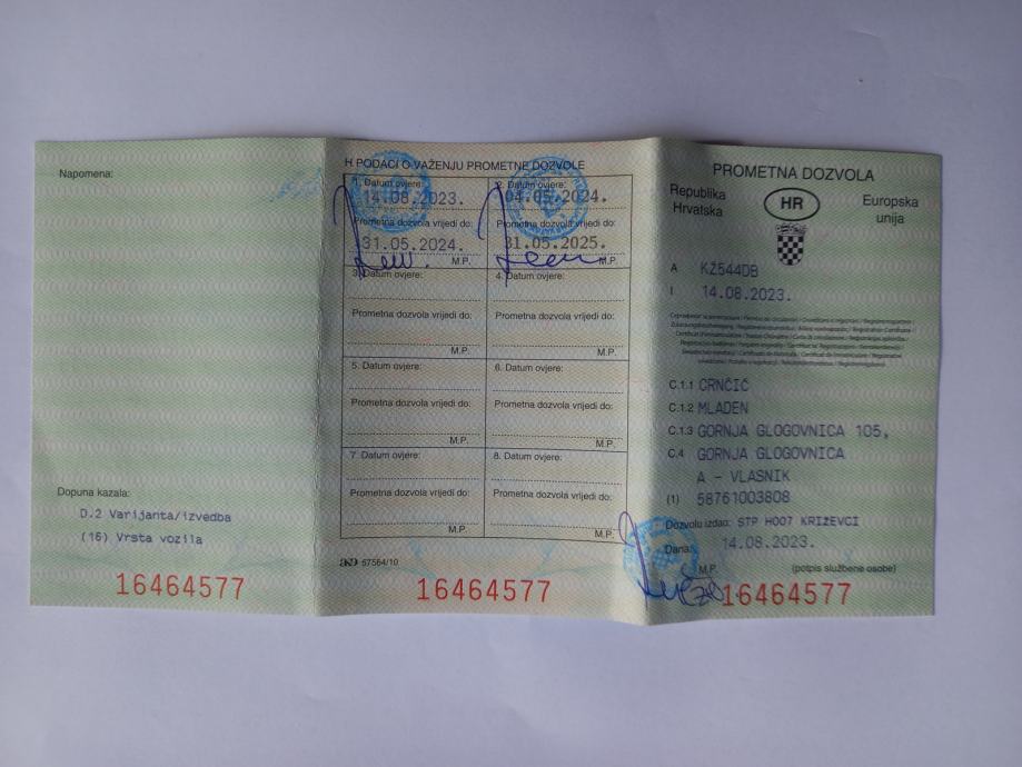 Registriran, servisiran, održavan i u ispravnom stanju.