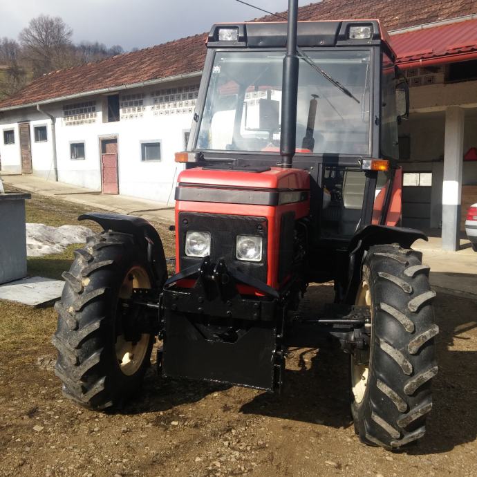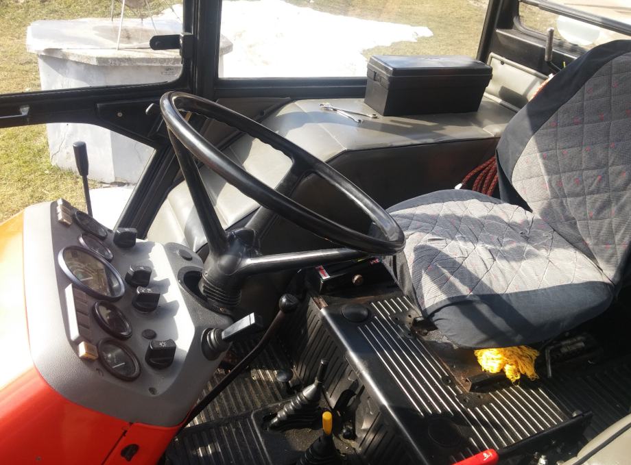 Traktor je u odlicnom stanju.. Papiri uredni. Registriran do 18.8.2017.zadnje gume original tvornicke 80%.Original boja. Od opreme ima automatsku kuku, utege, poteznice, 3izvoda hidraulike za kipu. Sjedilo podesivo po visini, kardansko vratilo na540 i 1000 okretaja. Grijana kabina, radio.