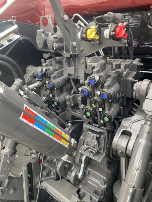 Dva para prednjih hidrauličnih spojnica preko prednjeg dijela regulacijski ventili