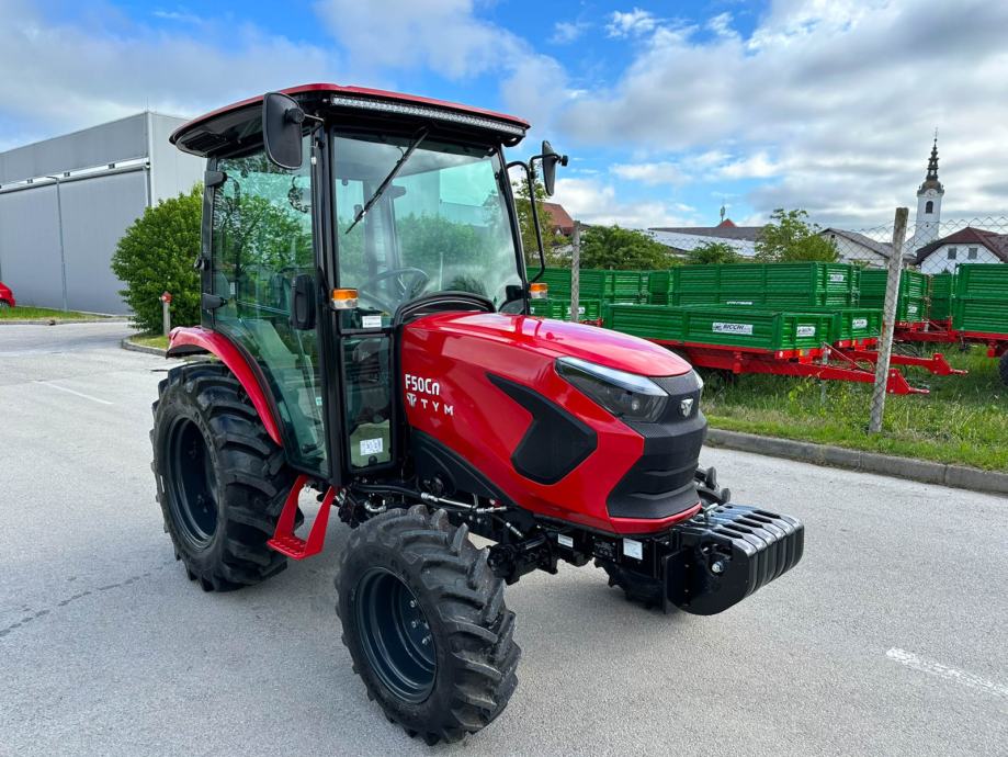 Traktor TYM F50Cn je svestrani model, namijenjen raznim poslovima na gospodarstvu, pri uređenju okoliša ili drugim zahtjevnijim radovima. Opremljen je četverocilindričnim motorom snage 48 konjskih snaga, koji osigurava pouzdan i ravnomjeran rad čak i pri zadacima koji zahtijevaju veću snagu. Hidraulični sustav omogućuje podizanje tereta do 1500 kilograma, čime se proširuje uporabnost traktora pri radu s priključcima poput plugova, kosilica ili utovarivača.