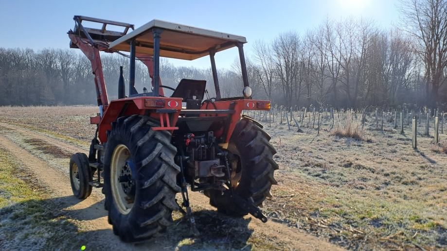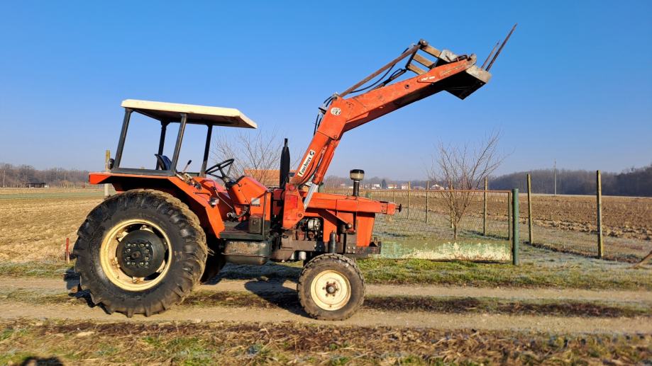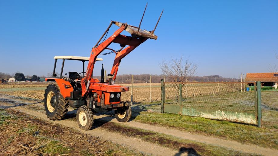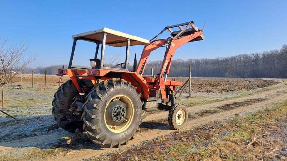 Traktor je u originalnom stanju,nije farban,mehanički ispravan te nema dodatnih ulaganja.Rađen je za zapadno tržište,gume pednje 6.50-16,a zadnje 16.9-28 kioje su skoro nove.Ima gornju i donju poteznicu,prednje amortizere,utege na zadnjim kotačima,servo volan.Opremljen je utovarivačem marke FAUCHEUX sa prednjim vilicama,a ima i korpu.Radi besprijekorno.Traktor u jako dobrom stanju pogodan za manje gospodarstvo.Za više informacija nazvati 098 139 16 10
