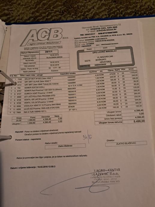 Na 6500 2016te napravljan generalno motor od tad je na uskim gumama i radi međurednu obradu, posjedujem račune od generalke.