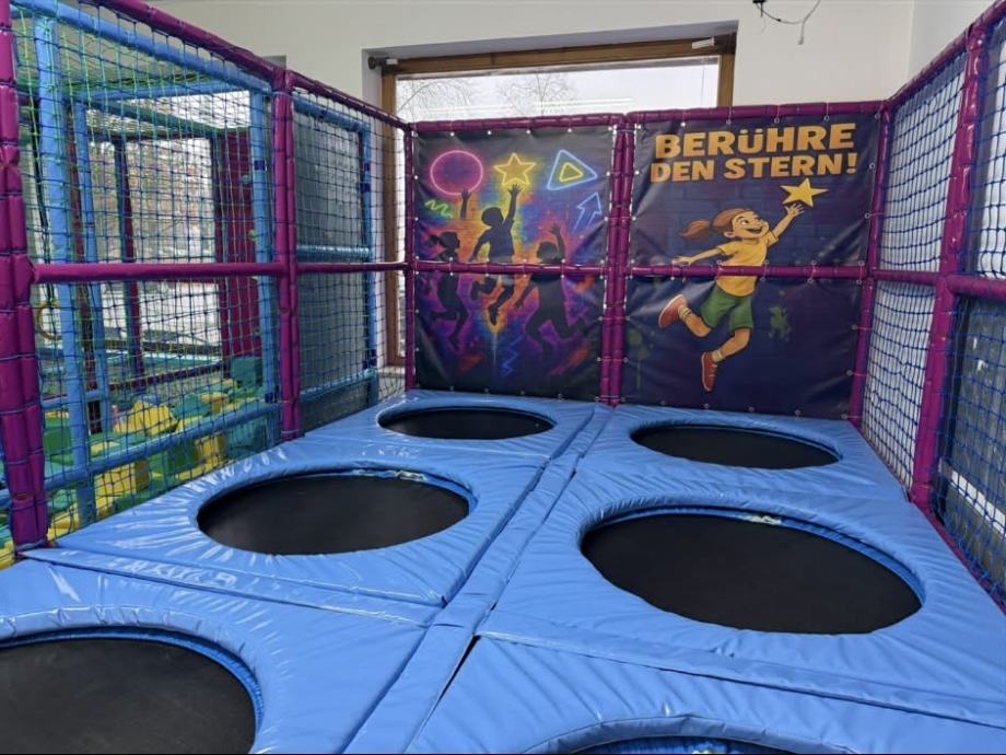 6 trampolina precnika 1m sa zastitnom mrezom i ogradom. Duzina softa je 4.05 m x 2,7m x visina 2m.Nije potrebno demontiranje i ponovo montiranje. Moze se poslati u gotovim dijelovima