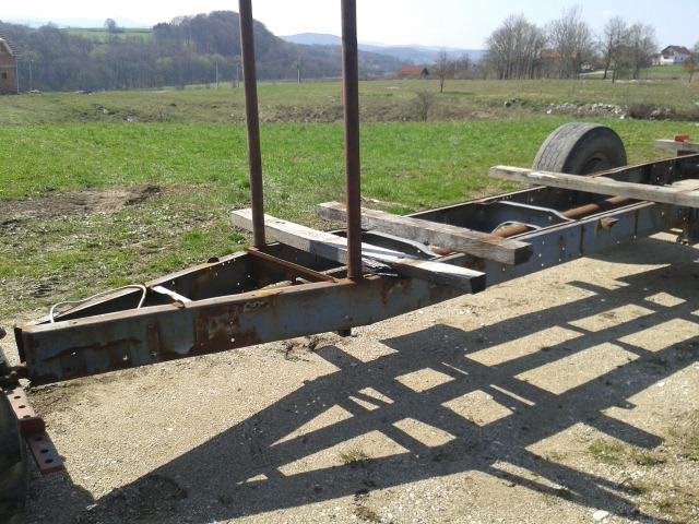 prikolica za metrice jaka i lagana kamionska sasija osovina sa gumama od kamionske slepe tvornicka kuka signalizacija.stupci se vade.tak da se moze svasta vozit.testirana na 11 metara.moze jos vise.dimenzije utovara 4.90 .zamjena za quad,atv sa papirima.traktor sam prodao tak da mi netreba samo smeta..molim normalne pozive..moze sms.email..slunj