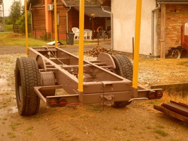 prikolica za drva(čeza) dužina tovarnog prostora 4,60 m visina štica 1,70 m širina gaza 2,00m sveukupna dužina 5,90m nosivist 8t ruda se miče po velićini traktora koćnica ručna mogućnost dorade hidraulićni koćnica gume 315-70/22,5 spremna za atest i registraciju MOŽE ZAMJENA ZA TRAKTORSKU KIPERICU