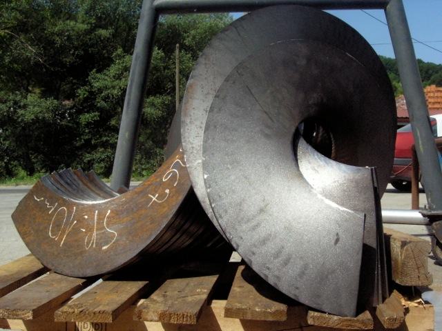 Pužnice - zavojnice - spirale - šneke, u segmentima, za iznimno teške uvjete rada; za Wood chips, drvena sječka, lesni sekanci, transporte u ciglanama, betonarama, industriji građevinskih materijala, mikserima (mixer za smjesu ; Kvernaland, Holmer, Seko), preradi drvene mase, preradi sekundarnih sirovina i sl. Promjer do 700 mm, debljine do 25 mm u konstrukcijskom čeliku. Korak do minimalno 1/2 promjera. Moguće i u HARDOX-u 450, te nehrđajućem čeliku 1.4301, nešto manjeg promjera i debljine do 12 mm. Izrada u kratkom roku, prema zahtijevima kupca; lijevi i desni smjer, korak do polovine promjera, centalna rupa za osovine standardnih promjera.