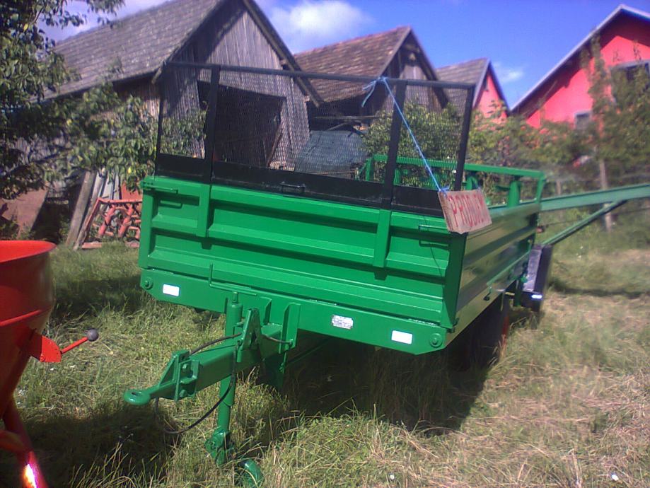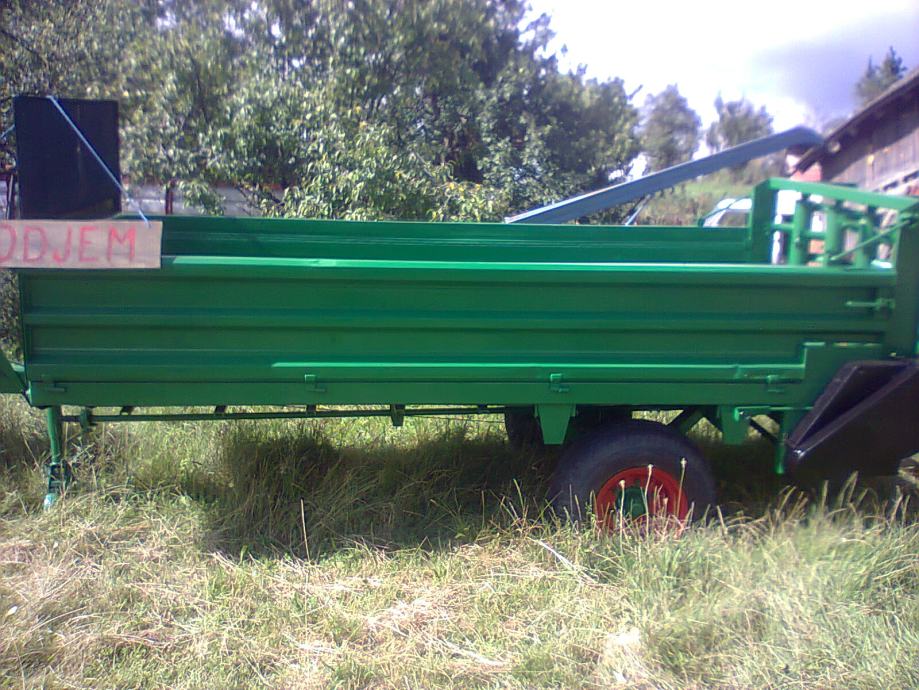 Prodajem Tehnostroj prikolicu za gnoj s 4 okomita valjka 4 tone potpuno ispravna vrlo malo radila ko nova prednja povišena stranica i zadnja stranica zatvorena kad se skinu valjci ,sve u orginalnom stanju ,kompletno obojana gume odlične cijena dogovor, moguća zamjena za traktor s prednjom vučom 60-80 KS (traktor IMT 542 + prikolica)pogledajte moje druge oglase za moguće kombinacije. Može i zamjena za dvoosovinku kiper 6-8 T koja ima uredne papire.