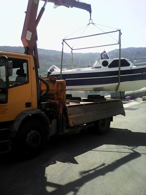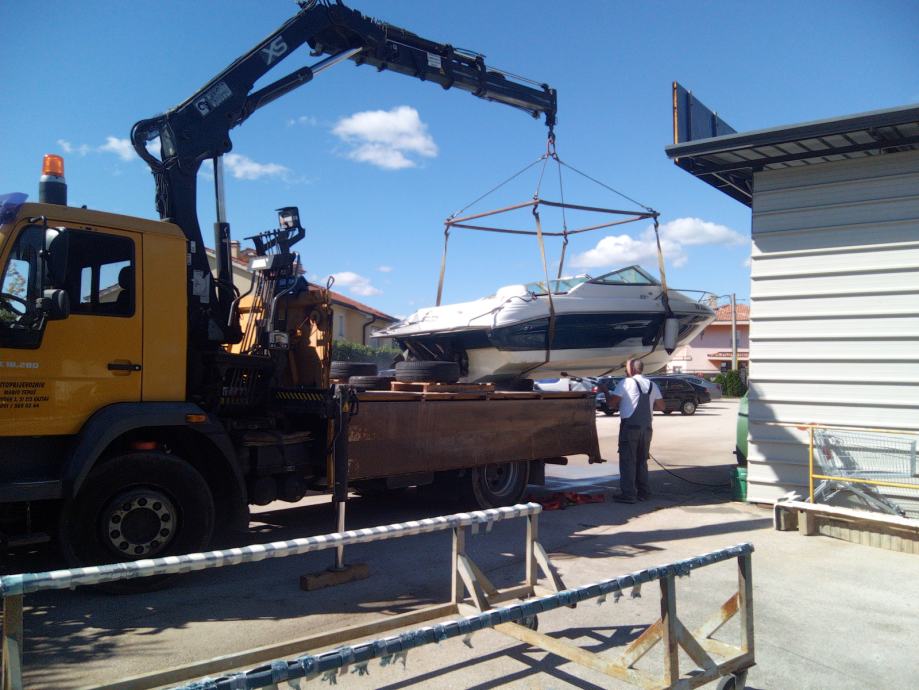 Prijevoz plovila(barke i gliseri) kamionom sa dizalicom.