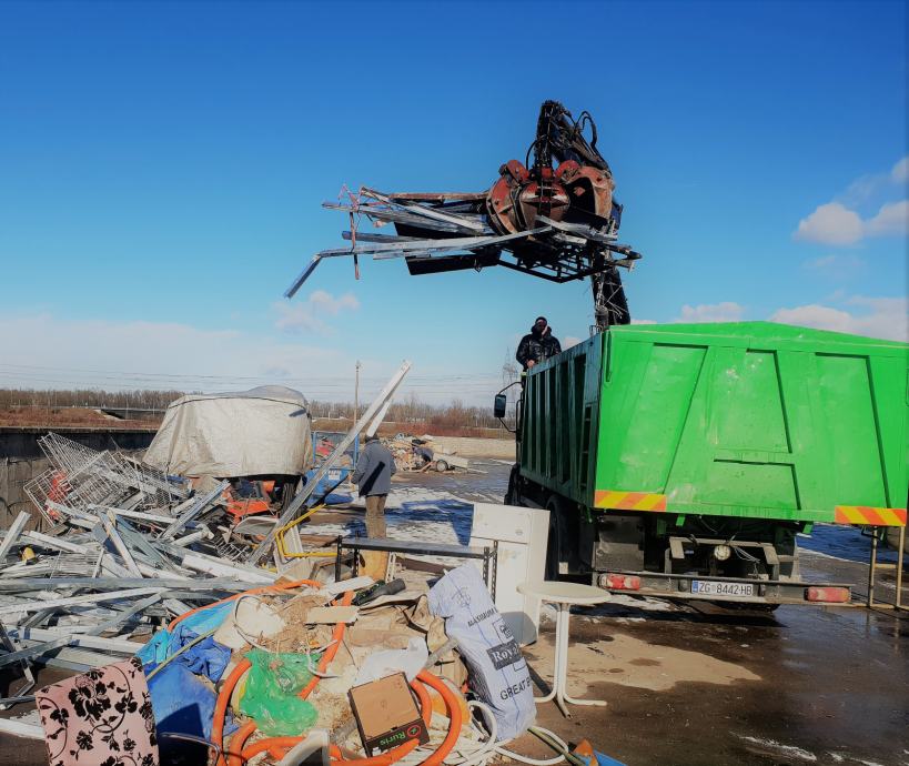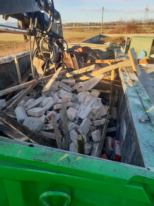 Za odvoz glomaznog otpada i šute imamo u ponudi kran s rukom (grajfer) prostranosti 15m3 do 10 T nosivost.