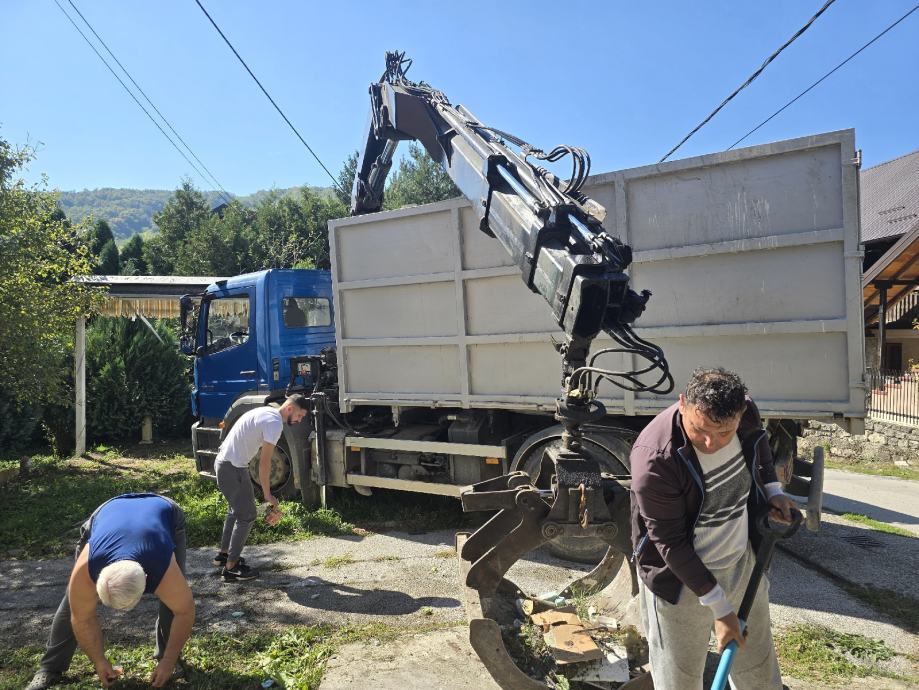 Odvoz glomaznog otpada kamionom zapremnine 20 kubika tovarnog prostora, kran ima dohvat 10 metara.