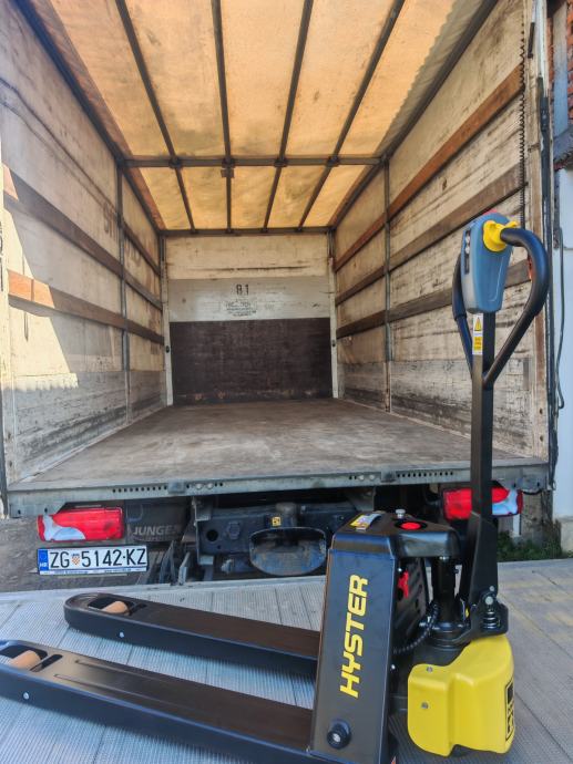 U ponudi imamo kamion ceradu sa istovarnom rampom te električni paletarac (viljuškar) koji može povući do 1500kg.