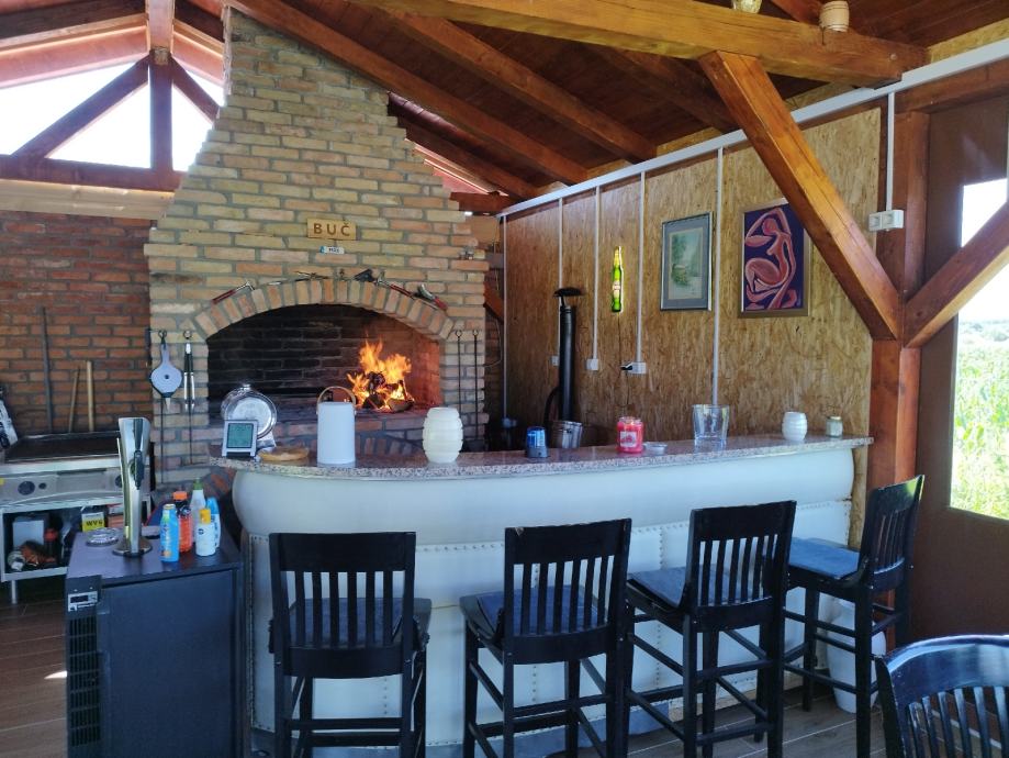 Sjenica "KUĆA KOD BUĆA" se proteže na 6000m2. Sastoji se od drvene sjenice sa pećenjarom, prostorom za druženje i prostranom zelenom površinom za igru i odmor. Osiguran parking, sanitarni čvor, rashladne vitrine, šankom, kuhinjom,pribor za roštiljanje, pribor za jelo i piće. Zamišljena je i realizirana kao idealno mjesto za obiteljska okupljanja, proslava za rođendane, krštenja, krizmi, raznih domjenaka. Savršen spoj boravka u prirodi i svih povlastica civilizacije. Sve informacije možete provjeriti na broj 092/2851/622
