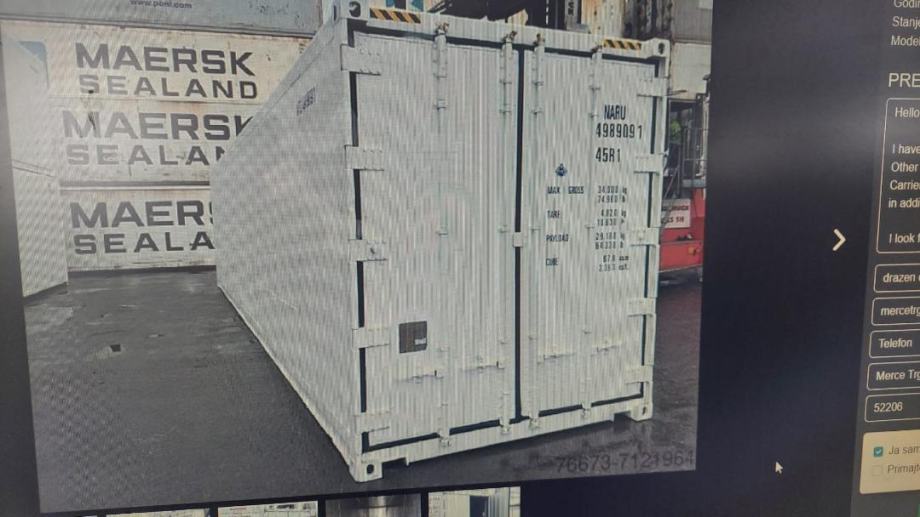 KONTEJNER BHLADNJAČA 12X2,5X2,6 M UKUPNO 36 M2 UNUTRA ROSFRAJ KOMPLRTNO SA PODOM POGODNO ZA SKLADIŠTE SVIH ROBA IZOLIRANO ZID 10 CM POVILJNO PRODAJEM.