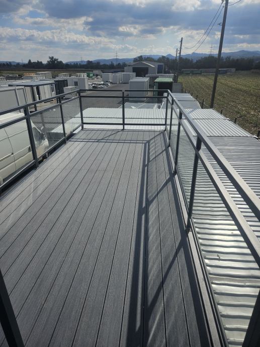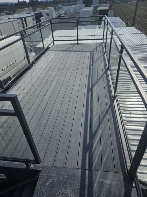 U ponudi imamo gotove tetase 6x2.4m za kontejnere sa ukljčenom čeličnom konstrukcijom, staklenom ogradom wpc daskama i svim potrebnim spojnim materijalima.