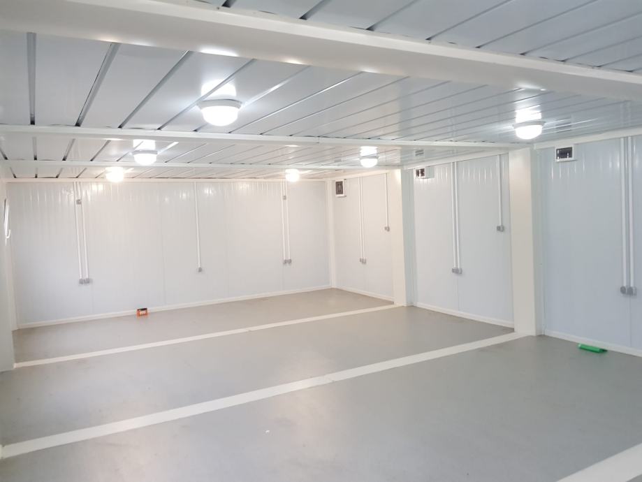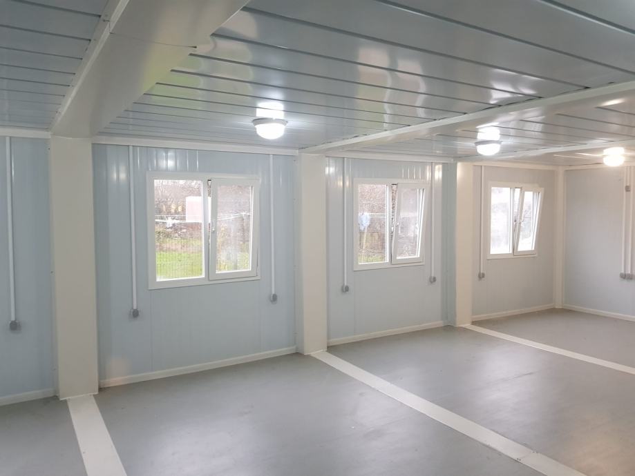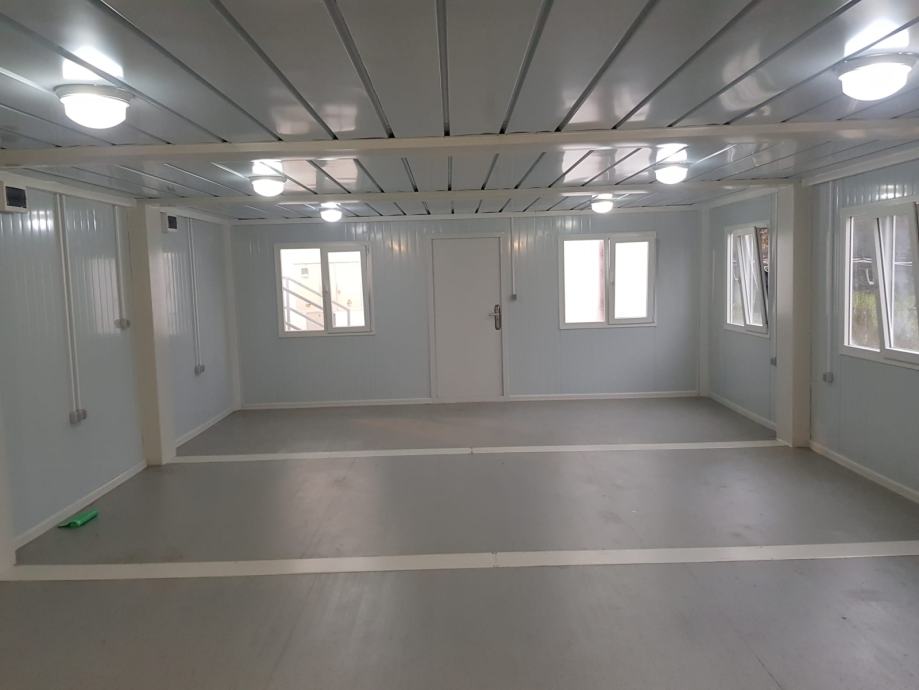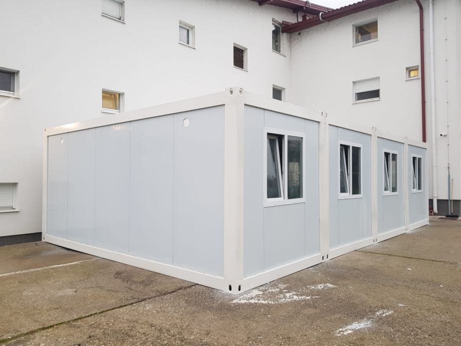 Kontejnerska kućica veličine 56m2, spojena 4 kontejnera 6x2,4m u jednu "kućicu". Mogućnost spajanja kontejnera i montiranja prema Vašim zahtjevima. Po narudžbi! Cijena za kontejnersku kućicu od 56m2 je 16 000€+pdv za osnovnu verziju.
