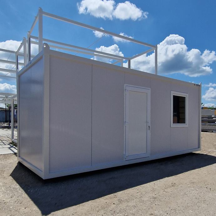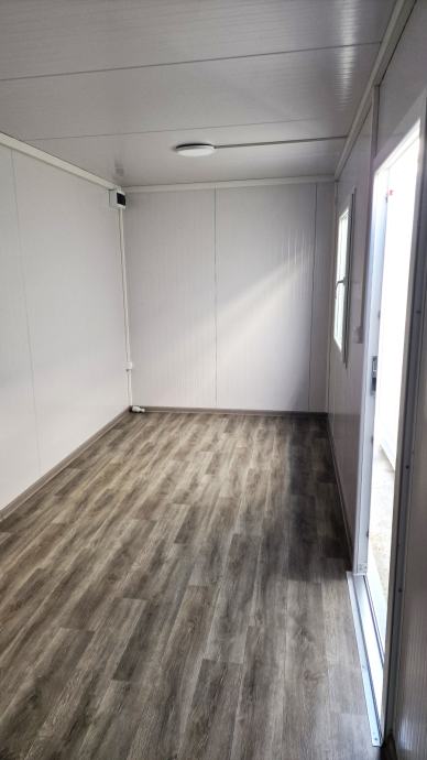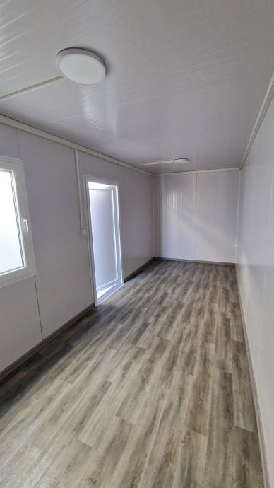 Kontejner sadrži: pvc vrata pun panel 103x205cm, pvc prozor 103x120cm i električnu instalaciju (2 utičnice i 2 led panela).