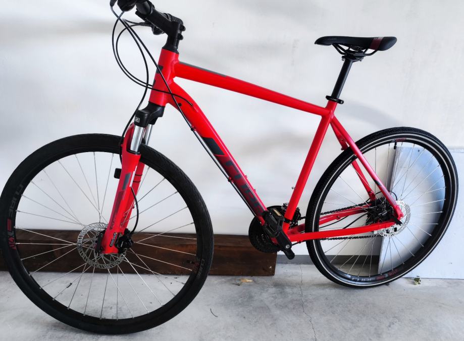 Prodajem rabljeni bicikl CUBE Natur u atraktivnoj crvenoj boji. Bicikl ima ramu veličine M (43-47cm) što odgovara većini vozača srednje visine.