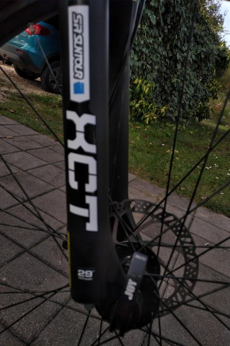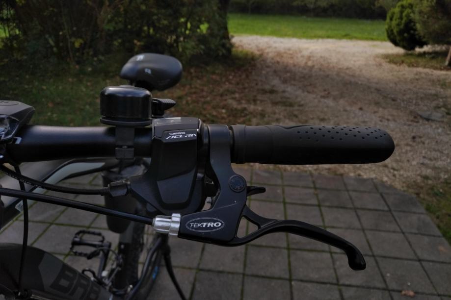 Veličina je L, kotači su 29 inčni,rasvjeta isprijed i iza,udobano sjedalo,torbica,nosač za bocu,Shimano prijenos i brzine.
