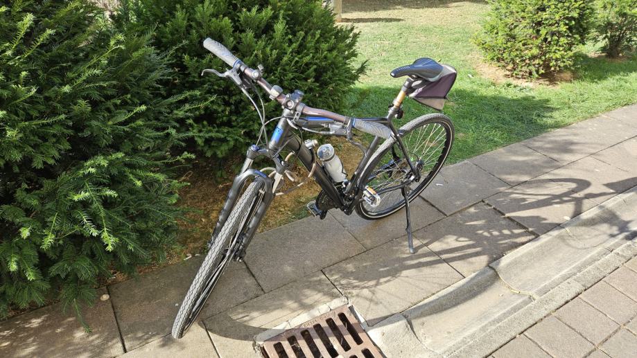 Prodajem treking bicikl Genesis Speed Cross 4.9 Ltd, alu rama vel.L(50cm), 28" kotači, 27 brzina, Deore mjenjač, hidraulične disk kočnice, Sr Santour Ncx vilica s lockoutom, podešavajuća lula volana, bočna nogica, nosač bidona, zvonce..