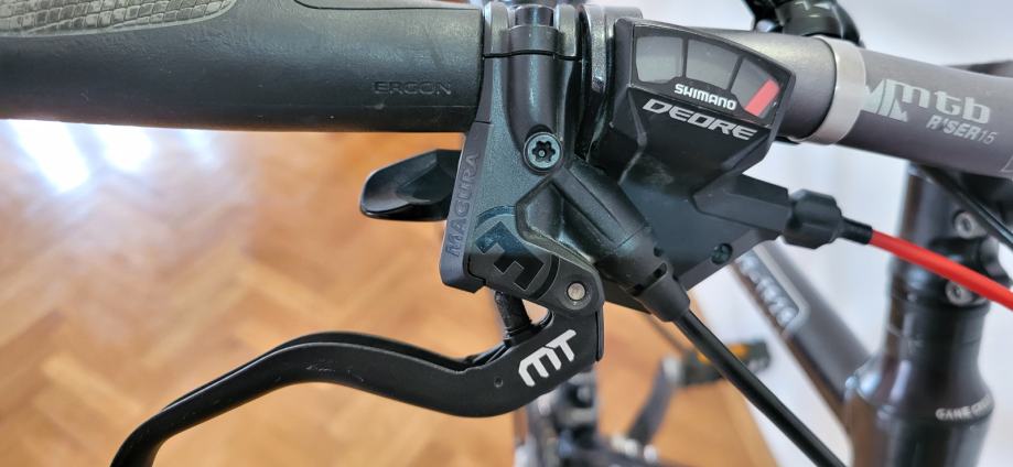 Stražnja kočnica ( čeljust + ručica)- Magura MT5 4-klipna, 6- bolt rotor 160mm