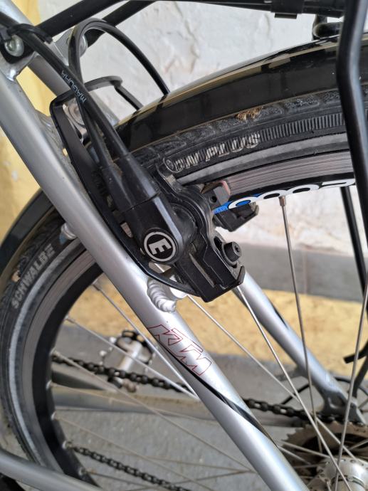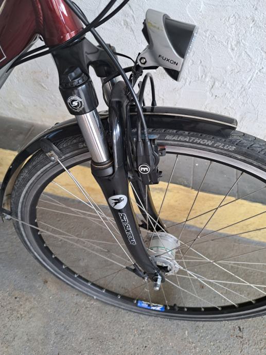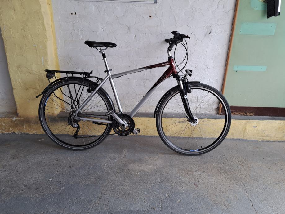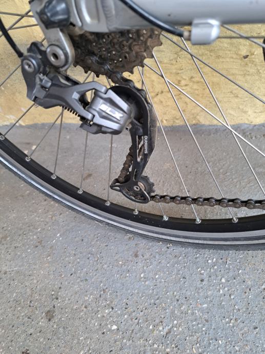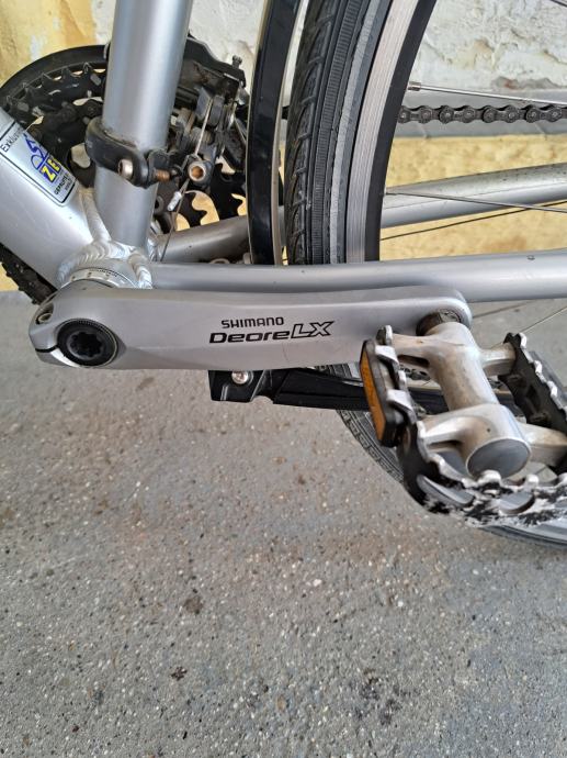 Rama je 51cm od rupe sjedala do sredine osovine pedala. 37-622(28 x 1 5/8 x 13/8 - 700x35c) dimenzije kotača, hidraulične kočnice, podesiva tvrdoća amortizera. Sve na biciklu je ispravno, osim manjih ogrebotina, sitnog oštećenja na sjedalu i prašine radi ne korištenja biciklu ne fali ništa. Izvrstan i ugodan bicikl koji kod mene nije ostvario svoj potencijal, a u zadnje vrijeme stoji radi manjka vremena.