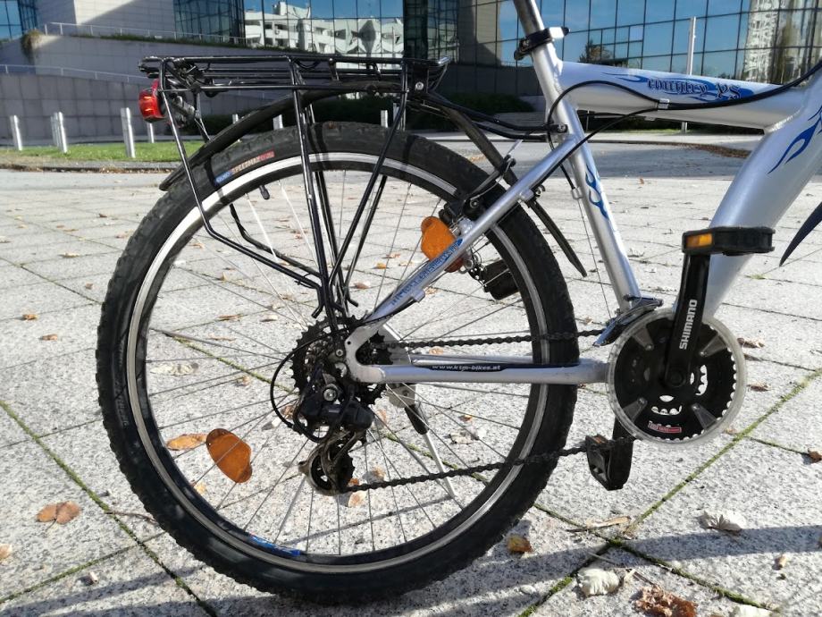 ali i grad jer ima prednje i zadnje svjetlo, nosače za prtljagu, blatobrane, amortizer za visoke rinzole,.,