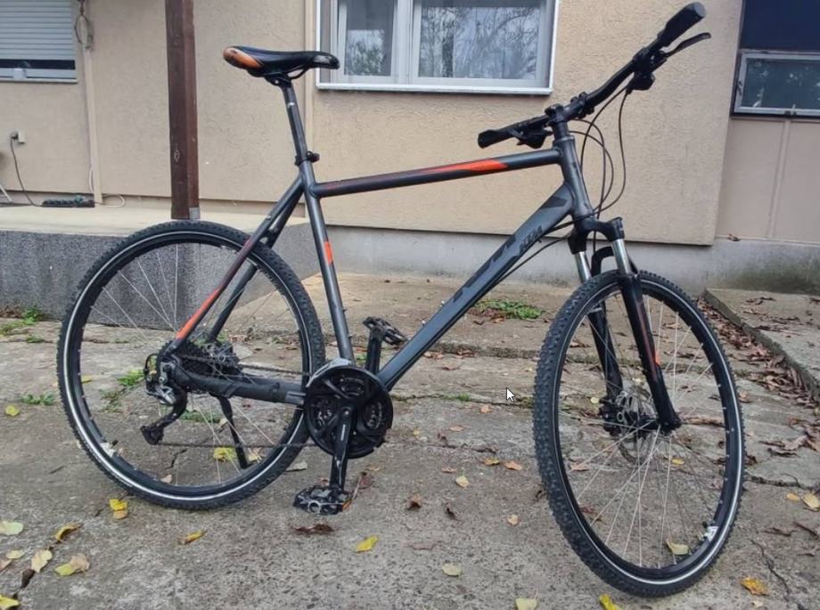 Prodajem KTM Fun road 2014 trekking bicikl, veličina rame 60cm (L/XL). Napravljen servis, sve podmazano. zategnuto, podešeno. Mašinica je Shimano Alivio, 21 brzina. Gume su skoro nove, prijeđeno možda 30ak km s njima. Bicikl je star 11 godina i očito ima tragove korištenja, sitnih ogrebotina, izlizan sic....ali mehanički u jako dobrom stanju