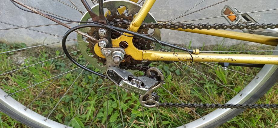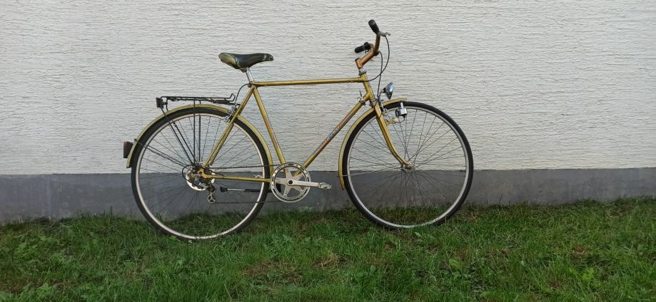 Ram 58 cm , boja orginal dobra, ram vile i blatobrani/vodobrani original, ostalo UPGRADE, vierkant kurble alu, šajba čelik 46 zubi, BB lager THUN W.Germany , Thompson 40 mm presfit konus lager,wasser dicht, pedale čelik W Germany, kotači 27x1 1/4 etrto 18-630 alu felge favorit 36h, gume dobre,volan čelik rise, lula volana alu,mjenjači SACHS Huret komplet, kranz 5 speed, svjetla dinamo rade, sve OK, podesi, sjedni i vozi, kontakt Miro 098 529 693
