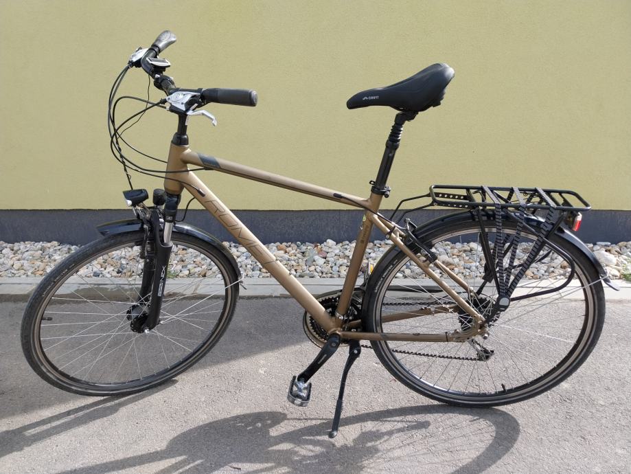 Romet trening gradski bicikl,veličina rame "L" 51cm,u odličnom stanju,očuvan!Bicikl ima automatsko svijetlo sa dinamom Nexus u prednjem kotaču.Svijetlo ima luxomat tako da se ne mora paliti i gasiti,sve odradi po jačini vanjskog svijetla!Alivio mjenjači,čvrst prtljažnik sa gumama za osiguranje ili po dogovoru bisage!?Udoban,amortizer u cijevi sjedala,vrlo brz,razlog prodaje mala rama...