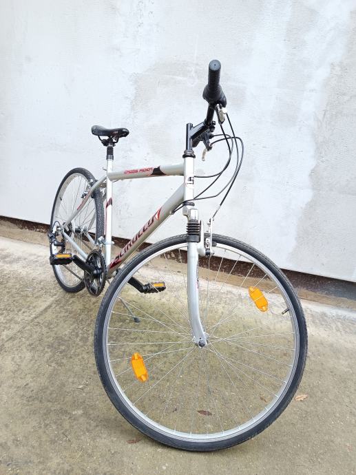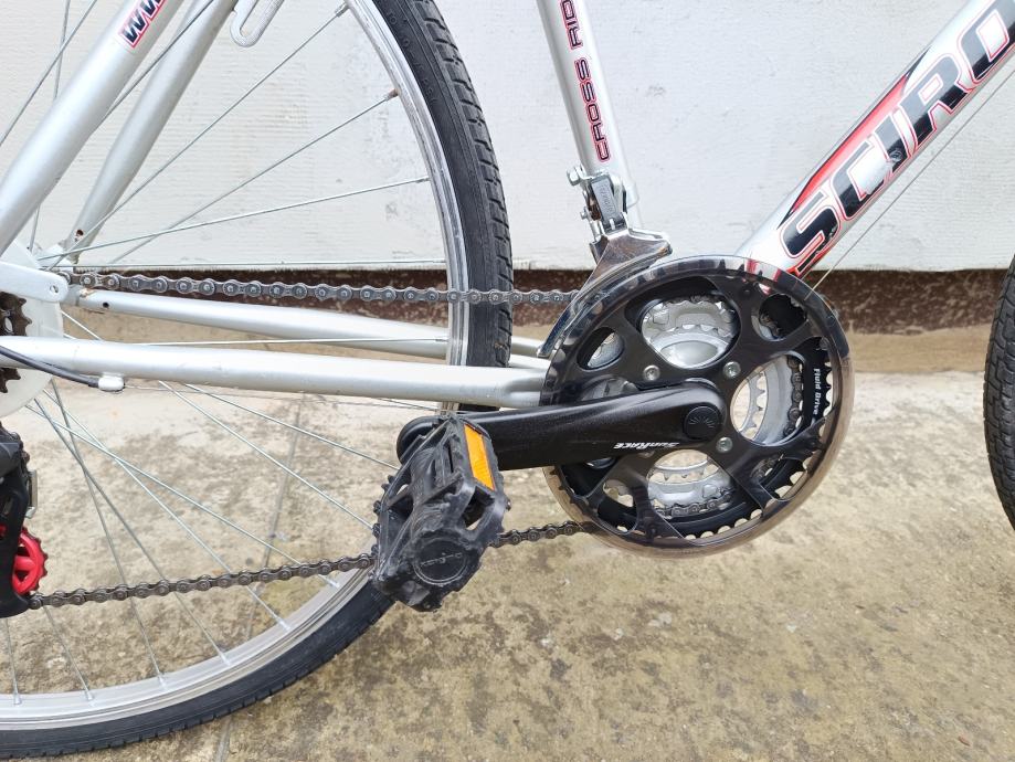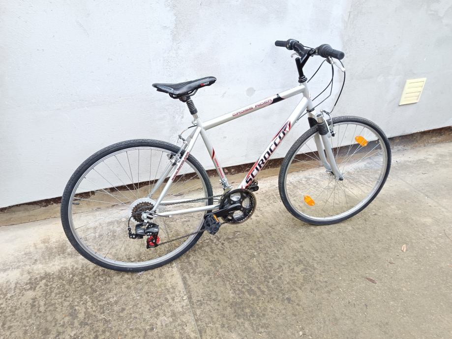 Prodajem Scirocco Cross Rider trekking bicikl s 28" kotačima. Opremljen je prednjom amortizerskom vilicom i amortizerom sjedala te Shimano mjenjačima . Bicikl je očišćen i podmazan te spreman za vožnju. Pogodan za vožnju po asfaltu i lakšim terenima.