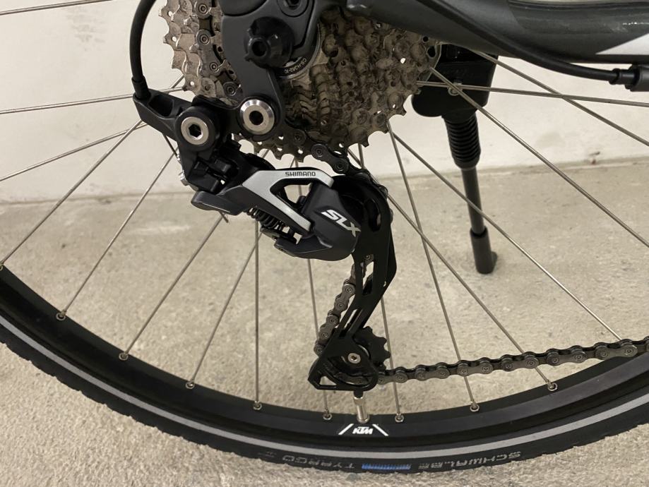 Bicikl ima kompletnu Shimano opremu, zadnji menjač Shimano SLX(3x10=30 brzin), Taurus 28" dvostruki aluminium kotači, Shimano hidraulične disk kočnice, SR Suntour zračni ovjes s blokadom,Schwalbe Tyrago gume.