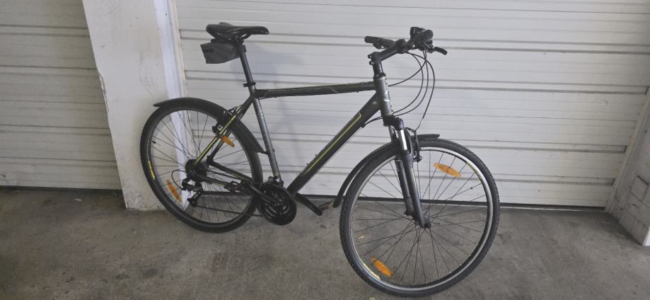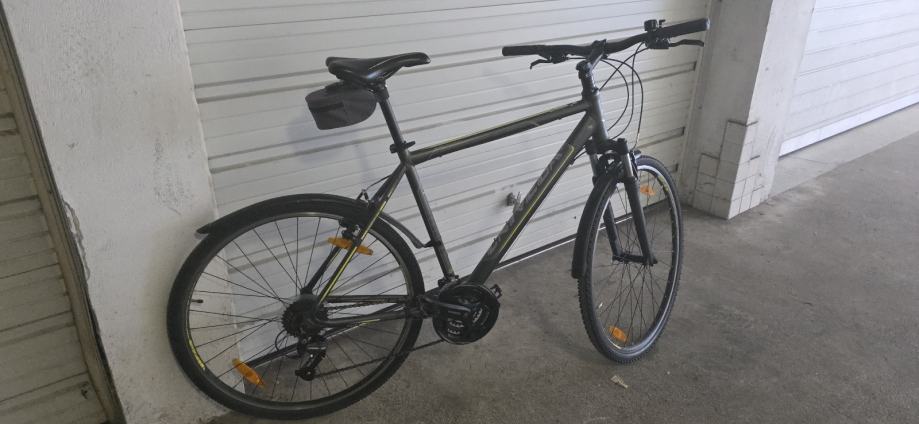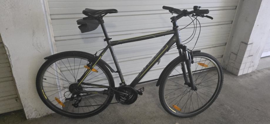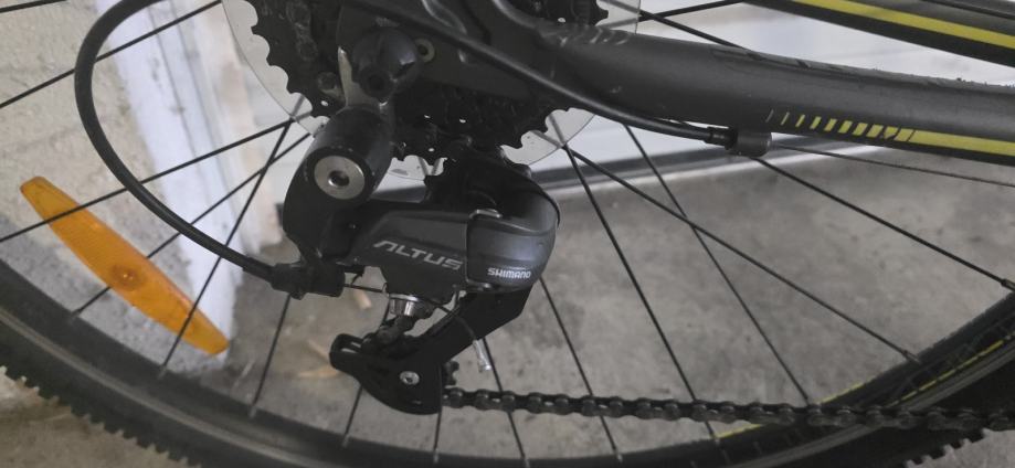 Prodajem Univega Terreno 2.0 Cross Trekking bicikl, muška geometrija okvira, veličina L (48-52 cm). Okvir je tamno sive, gotovo crne boje s žuto-zelenim detaljima. Mjenjač je Shimano Altus, što je solidan i pouzdan za ovu kategoriju bicikla.