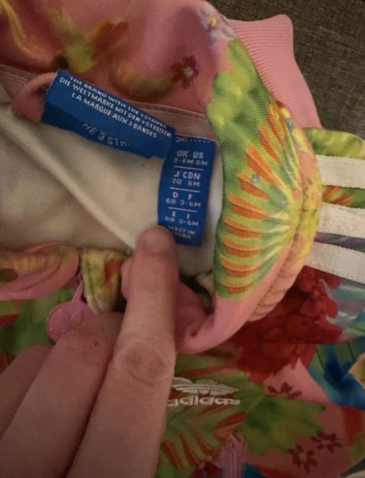 nije ušiven pa se to u pranju dogodilo. Ovi metalni dijelovi isto imaju par crtica. Inače prekrasna i nista od nedostataka nije jako primjetno. Mi smo ju nosili u veličini 68.