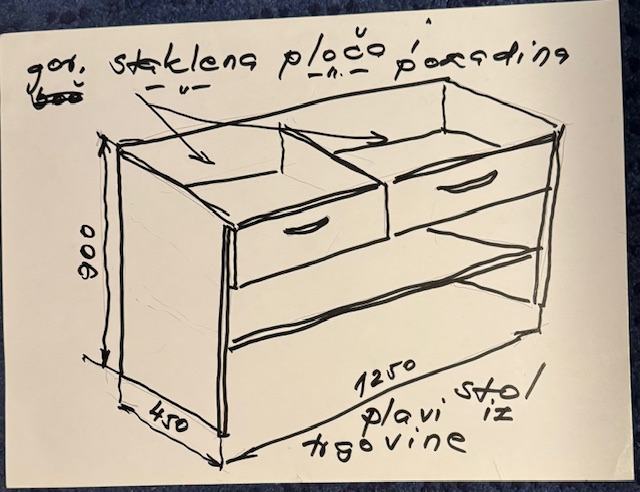 Na ručnom crtežu je zabunom nacrtano dvije ladice. Jedna ladica je.