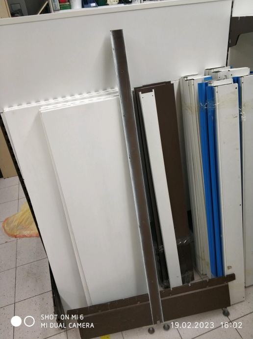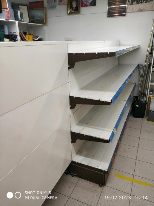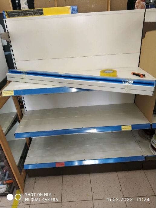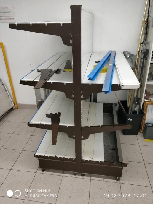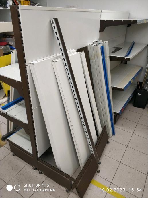 Zbog zatvaranja trgovine prodajem rabljene metalne police, obostrane gondole za trgovine, skladista i slicno.
