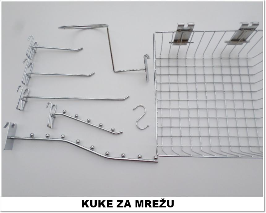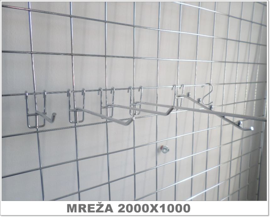 Prodajemo trgovačke mreže za izlaganje robe. Novo, kromirano. Dimenzije 2000x1000 mm. Imamo i sve vrste kukica za mreže kao i nosače za montažu mreže