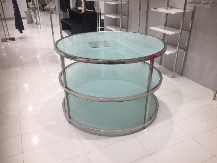 Stakleni stol sa metalnim okvirima, dostupno više komada, moguća korekcija cijene. Pogodan za izlaganje odjeće ili drugih artikala, 100€ / kom
