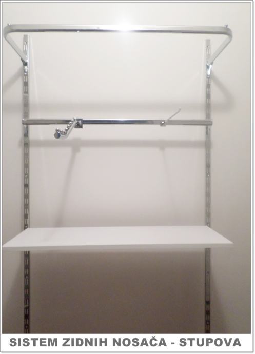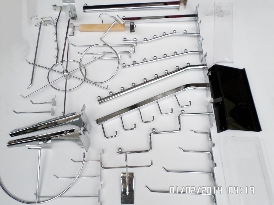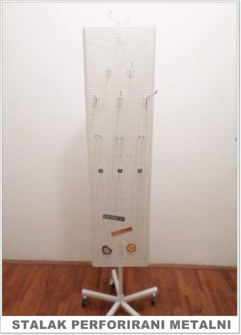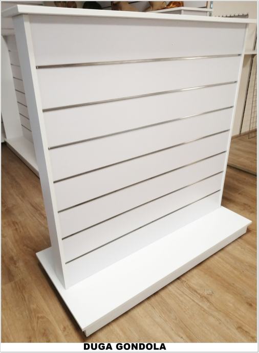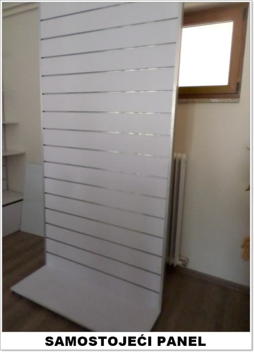Prodajemo inventar za trgovine, butike, gift shopove, knjižare i ostale poslovne prostore. Zidni paneli, samostojeći stalci (gondole), police, razne kukice, nosači i stalci. Zidni paneli i gondole su namjenjeni za izlaganje različite robe i imaju najveću primjenu u opremanju poslovnih prostora od svih sistema. Izuzetno su praktični i nude veliki broj kombinacija kod izlaganja robe. Paneli su od medijapana dimenzija 2440x1220 mm (okomiti) i 1220x2440 mm (vodoravni), a gondole su raznih oblika i dimenzija. Novo. Visoka kvaliteta. Cijena panela SAMO 79,90 € + alu. vodilica 2,49 €. Razmak između utora na panelu 10, 15 i 20 cm. Crni paneli 89 €. U ponudi također imamo lutke za izlog,male i velike stalke za nakit, privjeske, razne sitnice, stalke za kape i šešire, razne stalke za odjeću, stalke za čarape i rukavice, stalke za cipele, stalke za naočale, perforirane stalke, akcijske košare, stalke za magnete, sve vrste kukica i nosača i još mnogo toga.