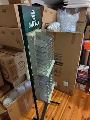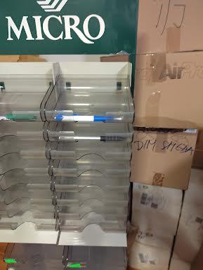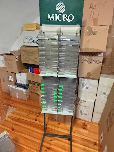 Polica za kemijske olovke, grafitn olovke, flomastere, markere, ima 32 pozicije - ladice, za pregledno izlaganje na vlastitom metalnom stalku, moduli se mogu skinuti i postaviti zasebno na pult