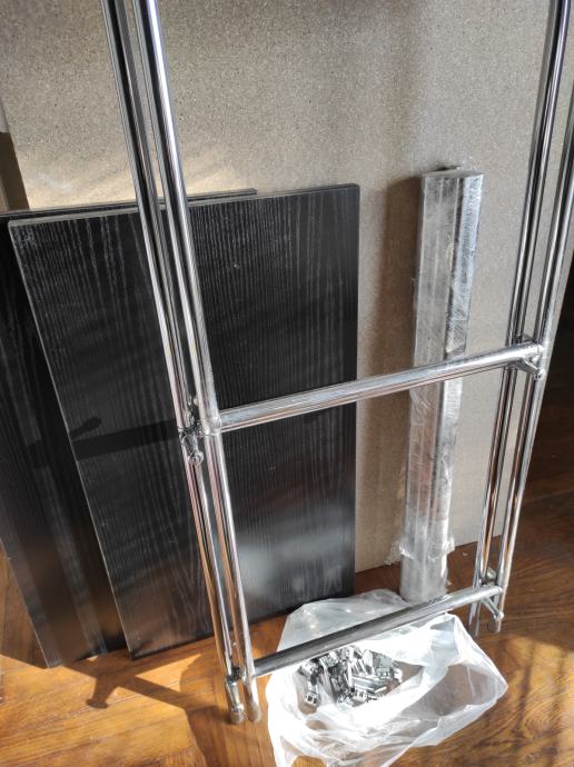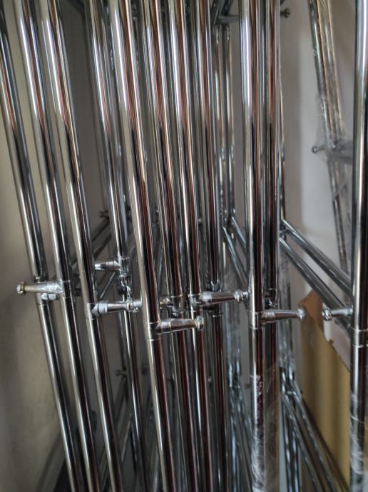 Stalaža od metalnih cijevi, kromirane, promjer 19 mm.